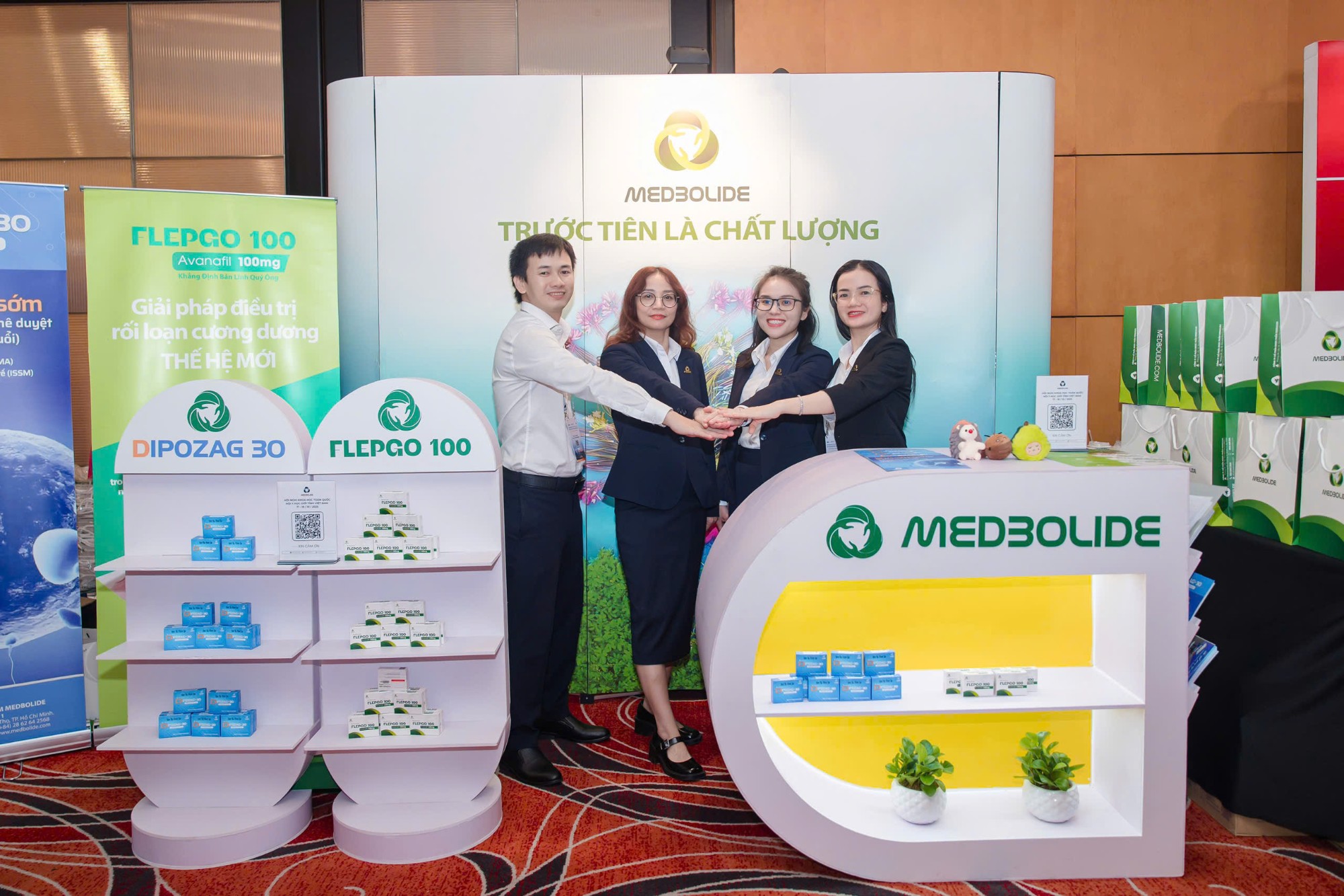 Đồng hành cùng Hội nghị, Công ty CPDP Medbolide tham gia tài trợ với gian hàng giới thiệu các sản phẩm FLEPGO 100 (Avanafil 100mg), DIPOZAG 30 (Dapoxetin 30mg), OZZOTIN (Nữ lang, Hoa bia, Tía tô đất, Lạc tiên...). Gian hàng đã nhận được sự quan tâm và đánh giá cao từ quý đại biểu nhờ thiết kế thân thiện, nổi bật với thông tin khoa học rõ ràng và các hoạt động tương tác. Medbolide có cơ hội để giới thiệu sâu hơn về cơ chế và ưu điểm của sản phẩm Flepgo với hoạt chất Avanafil 100mg – Thuốc ức chế PDE5 thế hệ mới – Giải pháp cương dương và điều trị rối loạn cương thế hệ mới – Khởi phát trong vòng 15p sau khi uống.